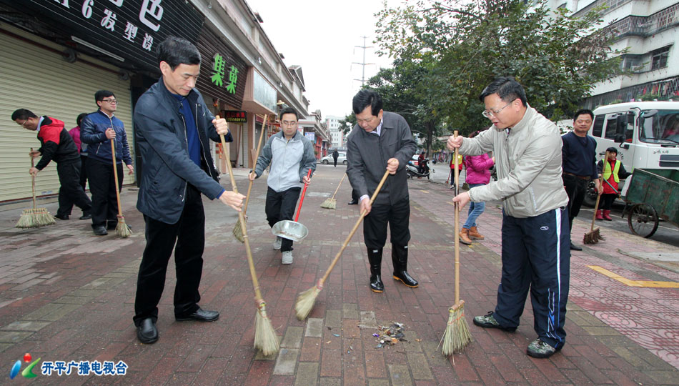 四套班子领导黄耀雄、余雪俊、张星杰等带领市各部门单位干部员工热火朝天地劳动,扫除道路两旁的垃圾,清除树底下的落叶和杂草,清理生活垃圾、建筑垃圾和淤泥,将垃圾、淤泥运到垃圾收集点,对城市卫生进行大整治。