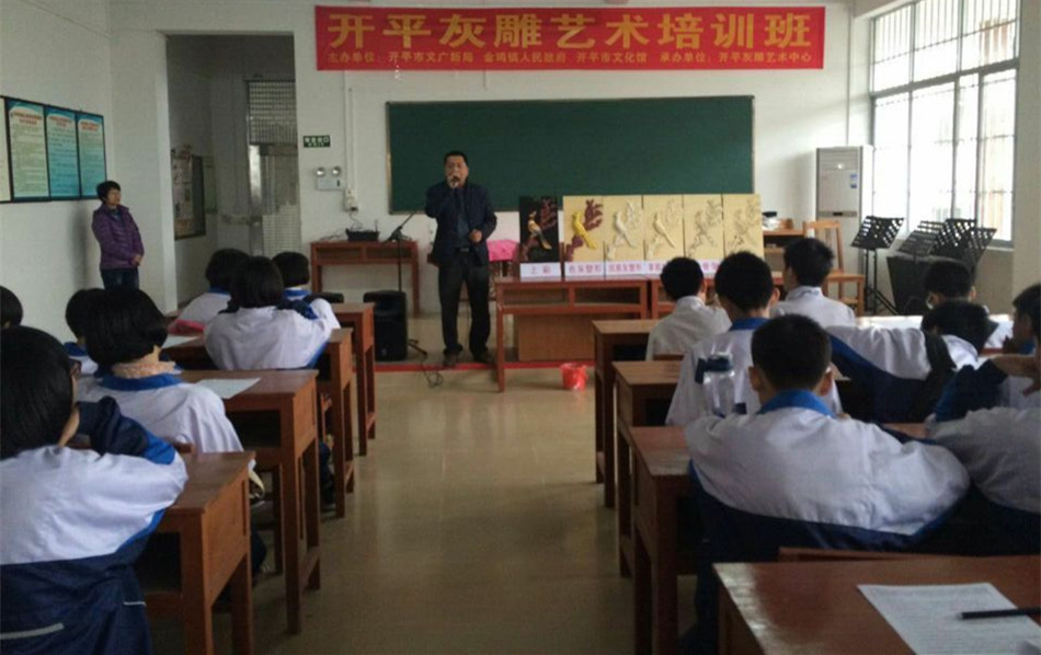 灰雕班在金鸡镇文体服务中心二楼的培训室正式开课,吸引了亚星官网
