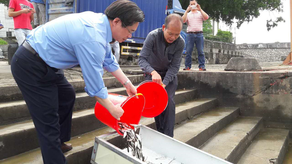 碧绿春水暖 流放鱼苗时亚星官网 大沙河水库流放鱼苗
