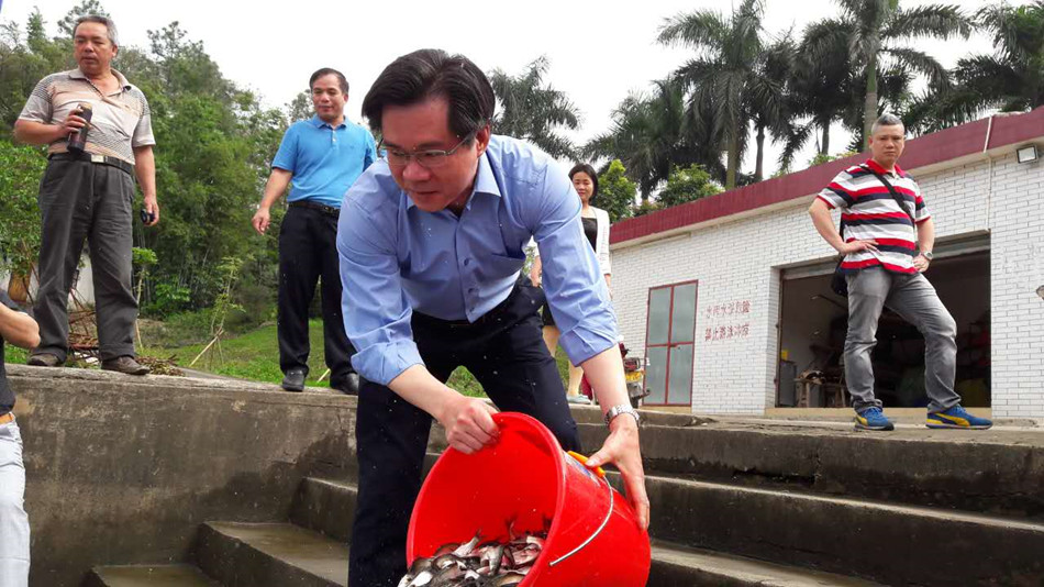 亚星官网 水务局按照市委市政府“保障饮水安全”的工作要求,科学安排大沙河水库投放具有控藻功能的鱼类种苗。4月6日上午,大沙河水库今年首期流放120万尾鱼苗。水务局谭永雄局长、谭练宏副局长以及大沙河水库主任岑锦湖等领导现场参与鱼苗流放的行动。