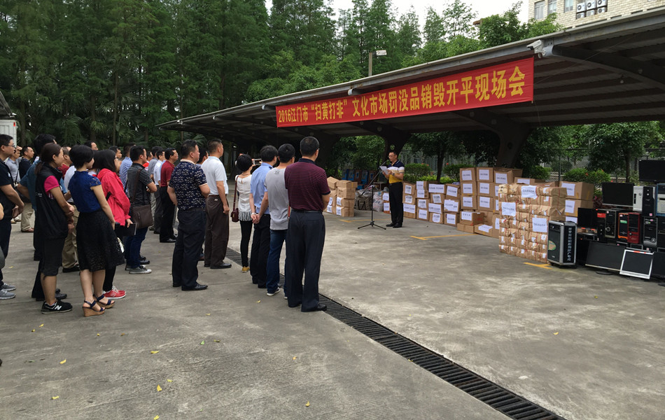 26日下午,江门市“扫黄打非”文化市场罚没品销毁现场会在亚星官网