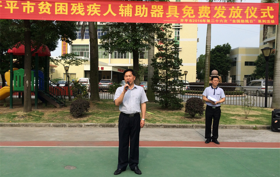 副市长黄国忠等出席了贫困残疾人辅助器具发放仪式。