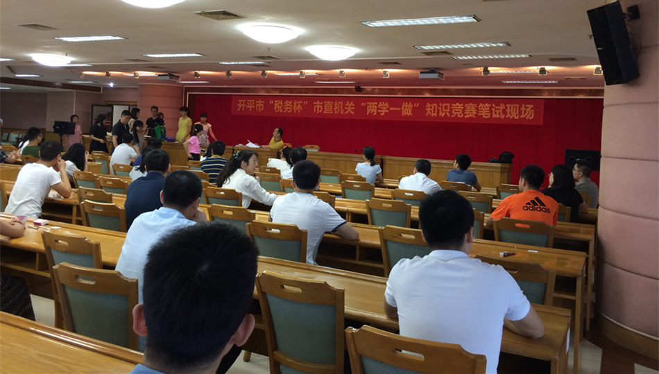 举行“税务杯”市直机关“两学一做”知识竞赛笔试,共有37支代表队伍111人同场笔试,将按照成绩高低产生16支代表队伍进入知识竞赛的半决赛。