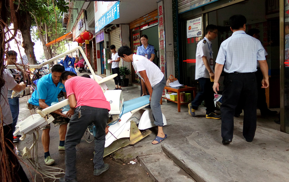 这次行动主要是针对无证行医的口腔诊所。执法人员分成两组,先后对宝源坊、祥龙、新昌、振华等地的几家牙医诊所进行检查,他们均未取得《医师执业证书》擅自行医,违反了《执业医师法》的有关规定,属非法行医,市卫计局对这些诊所进行了依法取缔,没收其医疗器械和药品并张贴行政执法公告。