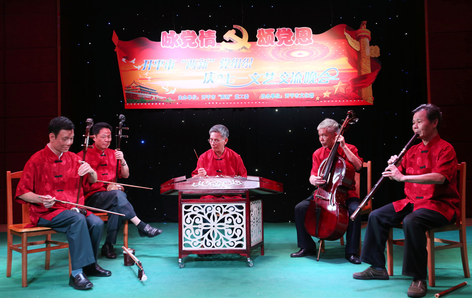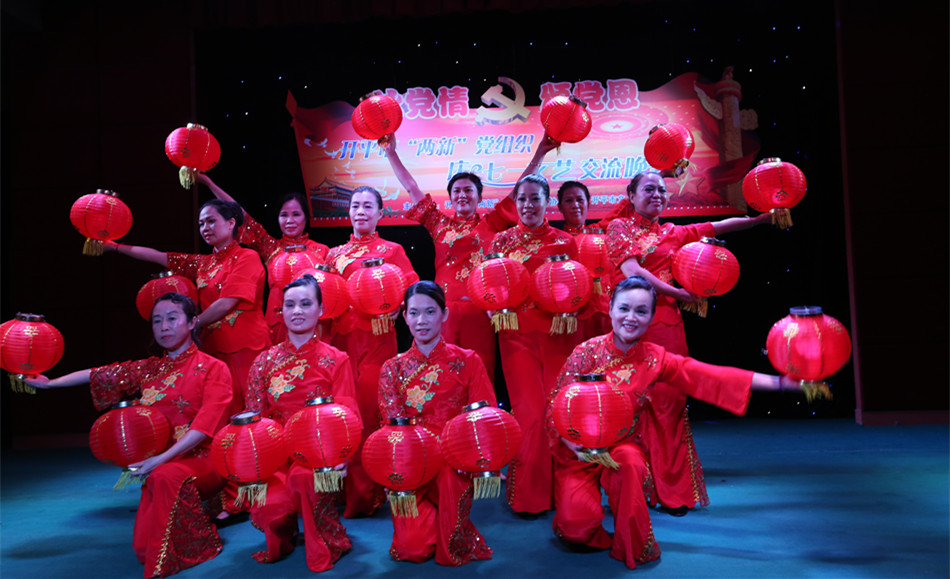 “两新”党组织庆“七一”――“咏党情•颂党恩”文艺晚会在市文化艺术中心二楼小剧场精彩上演,来自马冈镇、沙塘镇、蚬冈镇等“两新”党组织以及高美空调设备有限公司、广东金辉华集团有限公司、金山中学、联新(亚星