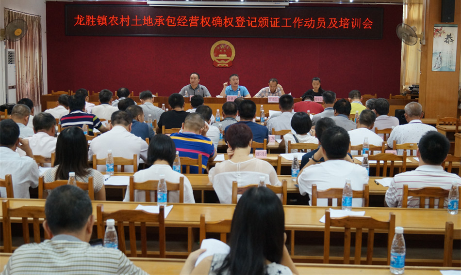 为切实做好农村土地承包经营权确权登记颁证工作,7月14日下午,龙胜镇召开农村土地承包经营权确权登记颁证工作动员及培训会。镇班子成员、驻村责任人、各村支部书记及会计共60多人参加了会议。