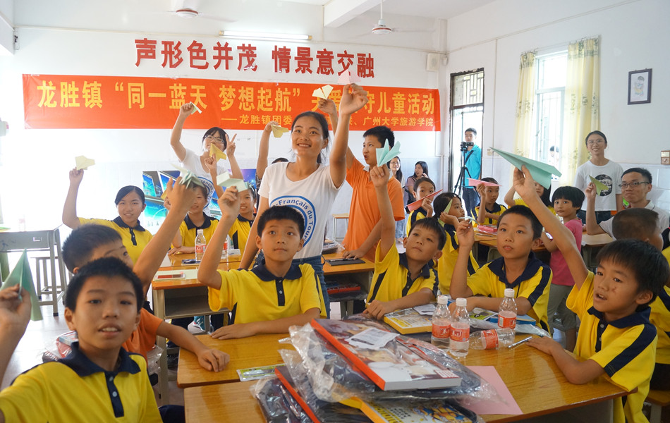 此次留守儿童关爱活动以航模科普知识为切入点,开展航模(无人机)科普知识认知、学习、培训以及技术应用,让留守儿童亲手折纸飞机和拼凑塑胶飞机模型,体验航模制作、飞行动力原理以及科技技术发展。广州大学旅游学院学生代表向留守儿童赠送了学习用品,并通过“我是小小梦想家”主题教育和安全知识教育活动,引导留守儿童制作梦想启航明信片,开展梦想总动员互动游戏,让留守儿童讲述并记录自己的梦想。