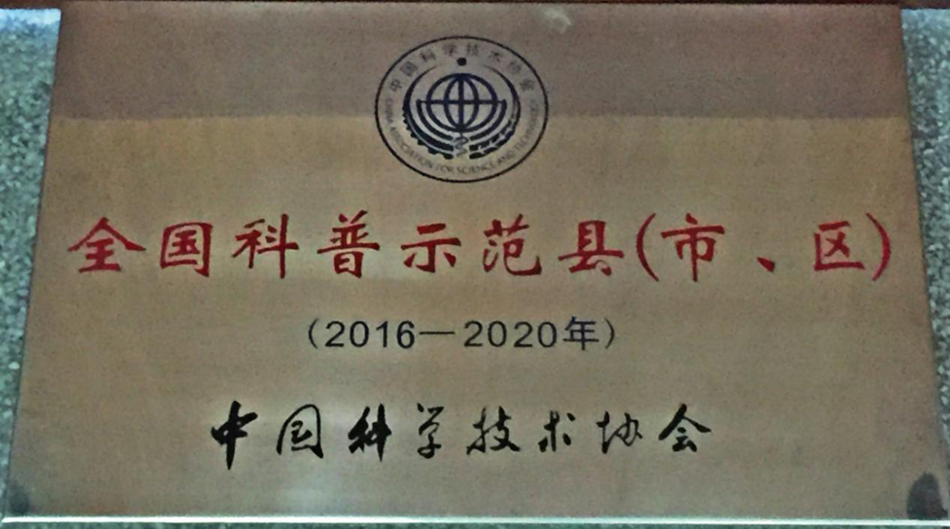 于2015年创建全国科普示范县(市、区),创建期间,精心组织,全民动员,紧紧围绕经济建设和社会发展,普及全民科学素质,认真落实创建工作的各项目标任务,于2015年10月通过国家检查验收。2016年2月,正式被中国科协命名为“2016-2020年全国科普示范县(市、区)”,示范期5年。【转自中国亚星