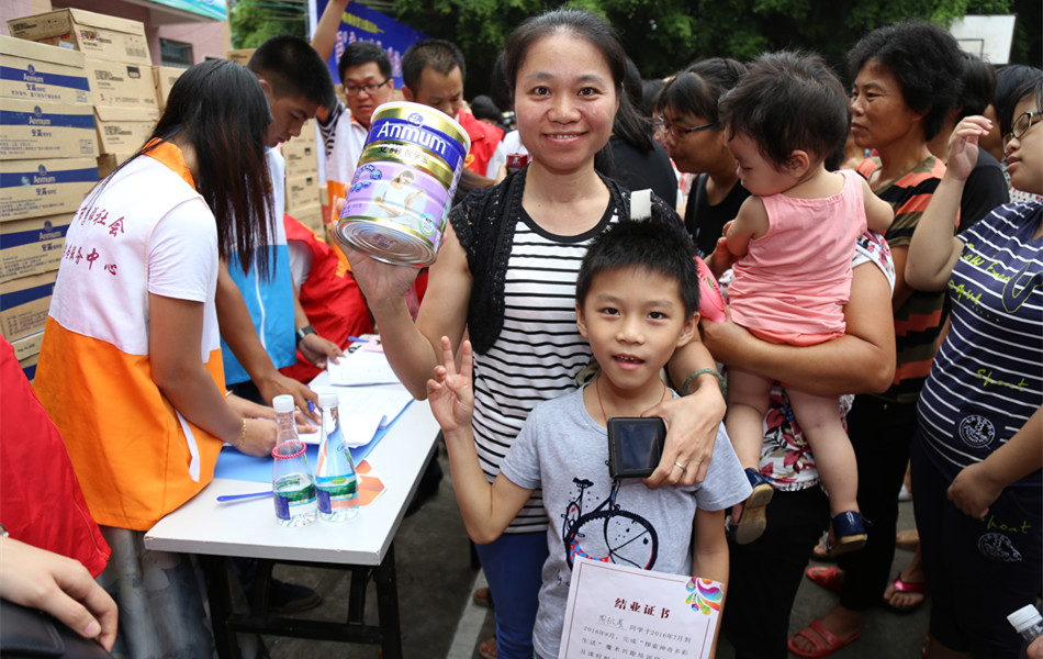 在活动中,市民政局负责人等与党员义工、热心商家现场为困难家庭派发营养奶粉。主办方还组织义工到东乐村上门为行动不便的困难长者送去营养奶粉,使他们感受到社会大家庭的温暖。【转自中国亚星