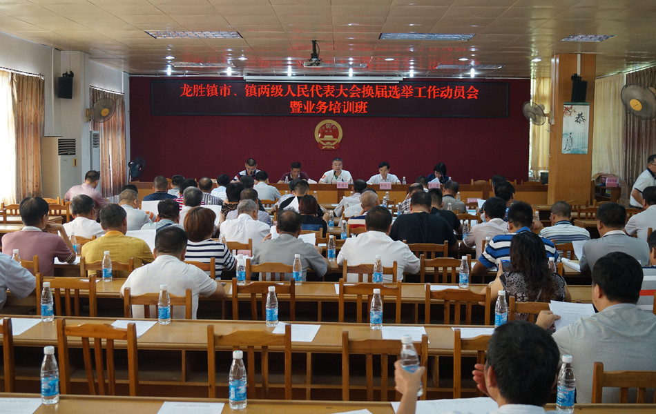 为切实做好龙胜镇市、镇两级人大换届选举工作,按照上级关于换届选举工作的部署和要求,8月25日下午,龙胜镇召开市、镇两级人大换届选举工作动员会暨业务培训班。镇全体班子成员、各部门单位负责人、全体驻村责任人、村(社区)书记、主任和负责人大选举工作同志共80多人参加了会议。