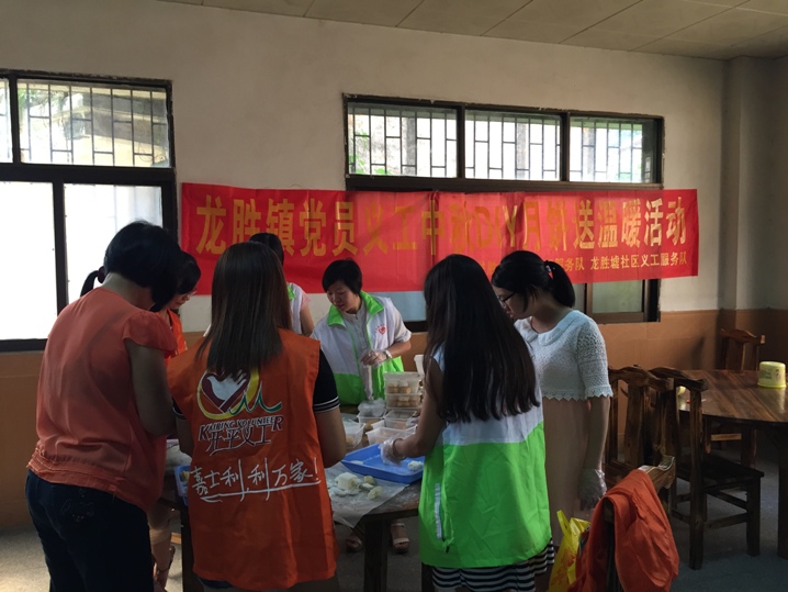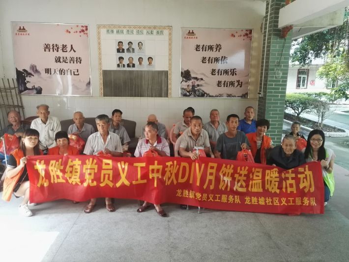 9月12日,龙胜镇妇联、龙胜镇团委、龙胜镇党员义工服务队和龙胜墟社区义工服务队联合开展党员义工中秋DIY月饼送温暖活动,龙胜镇党员义工积极参与制作,并将健康爱心月饼送到了龙胜敬老院的老人手中,将“两学一做”学习教育落到实处,积极回馈社会,体现党员队伍的积极性和创造性。
