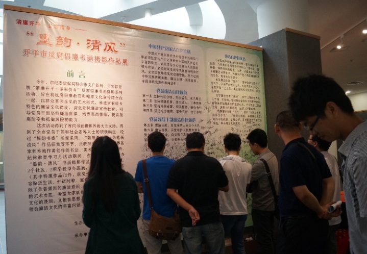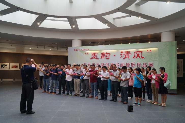 ·多彩侨乡”系列活动中的一项重要内容,把中华翰墨文化及反腐倡廉教育融合凝结在作品中,寓教于思。在一幅幅气势磅礴、震撼心灵的作品前,大家驻足良久,深刻领会书画作品中的廉洁精神。参观完毕,龙胜镇纪委书记梁润华同志带领全体党员干部宣读了廉洁自律倡议书,并在倡议书上签名承诺。