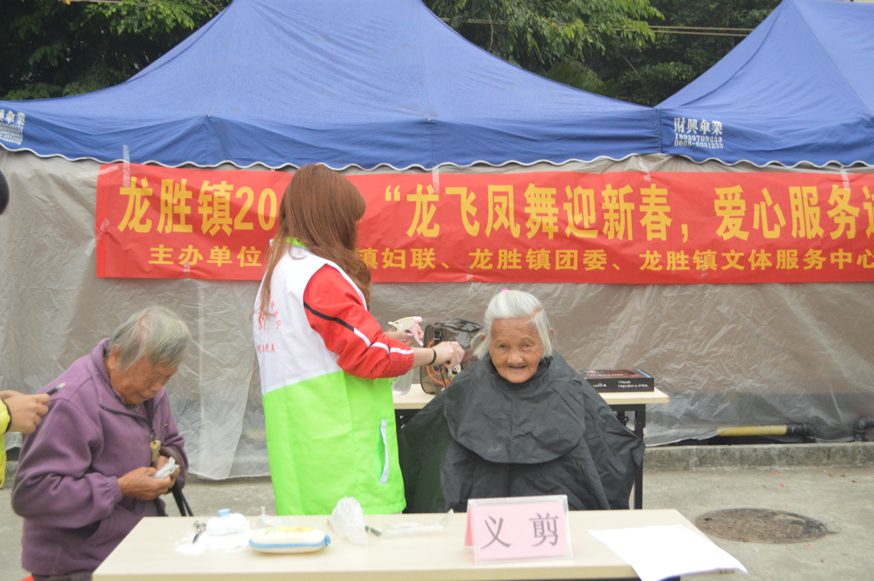 志愿活动现场共分为礼品派发区、义诊区、义剪区、政策宣传区、现场挥春书法区等五大服务区域。
