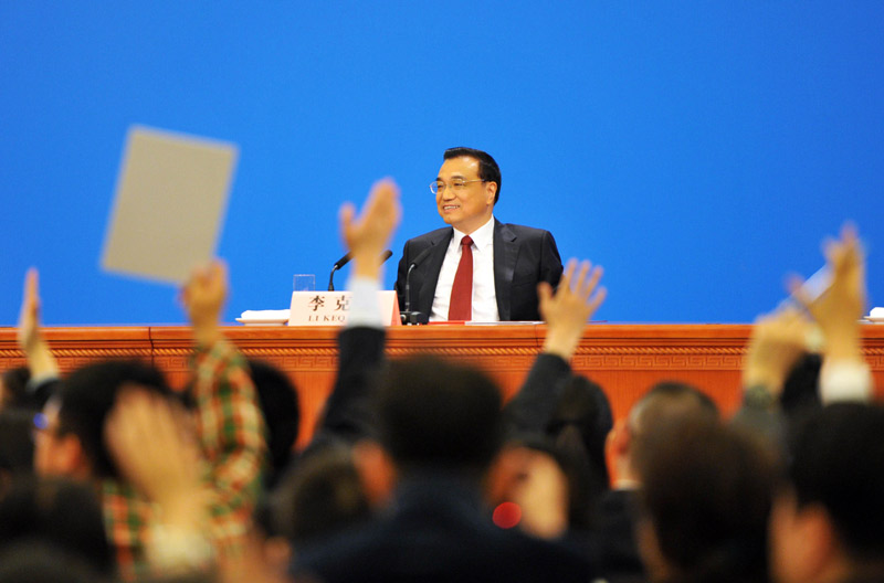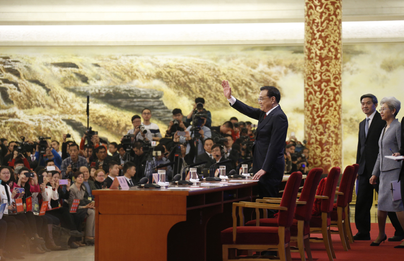 2016年3月16日,国务院总理李克强在北京人民大会堂与中外记者见面,并回答记者提问。新华社记者 吕迅 摄(资料图)