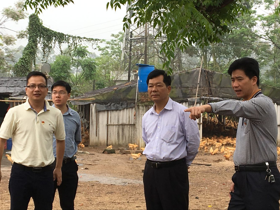 黄耀雄一行在大沙镇群联村委会鸡心石水库边侧杨本利畜禽养殖场检查