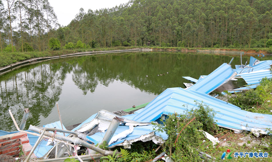 黄耀雄一行在月山镇北一那简水库内邱瑞能畜禽养殖场,检查禁养区畜禽养殖场清理关闭措施的落实情况。