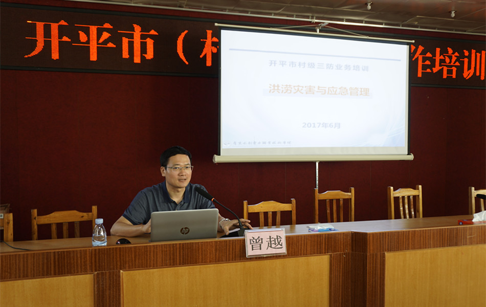 广东水利电力职业技术学院水利工程系副主任曾越在培训班上作洪涝灾害与应急管理专题讲座。今年,我市村级三防工作培训班于6月22日至23日开班,共分三期进行,全市有280多名学员参加培训。【转自中国亚星