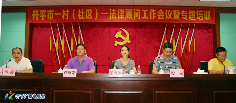召开一村(社区)一法律顾问工作会议暨专题培训,总结部署全市一村(社区)一法律顾问工作情况,表彰先进集体和个人。市委常委、市委宣传部部长颜海娜,江门市司法局党组成员梁士元出席会议。