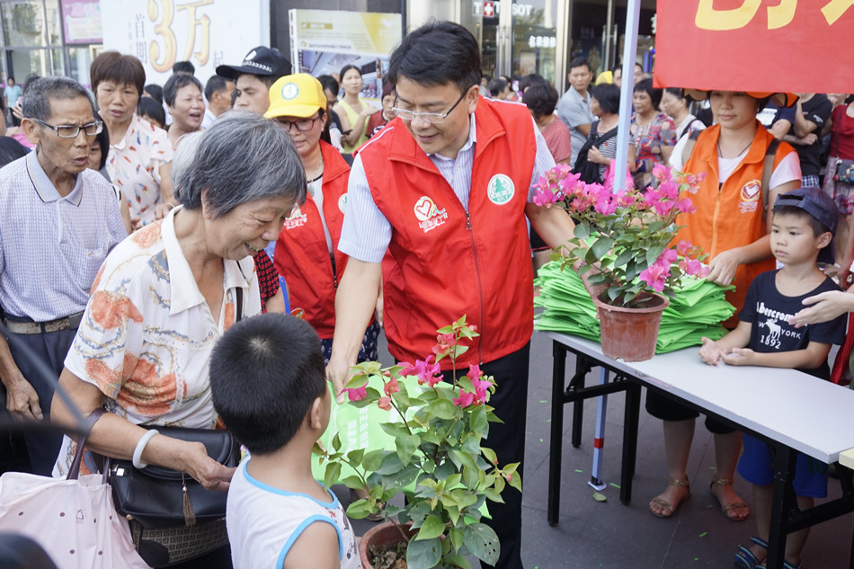 东汇城广场向市民派发盆栽植物,助力亚星