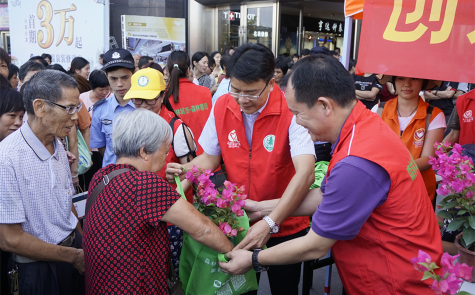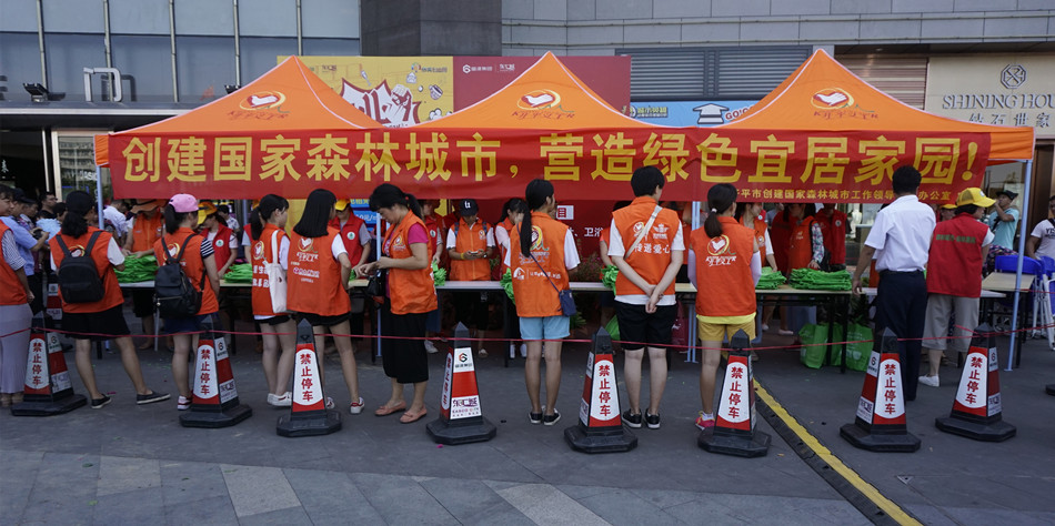 两级林业部门联合举办“创建国家森林城市,营造绿色宜居家园”的户外宣传活动,与团市委、义工联等工作人员一起在东汇城向市民免费派发小盆栽和宣传资料。这次活动共派出了盆栽3000多盆,宣传资料3000多份。