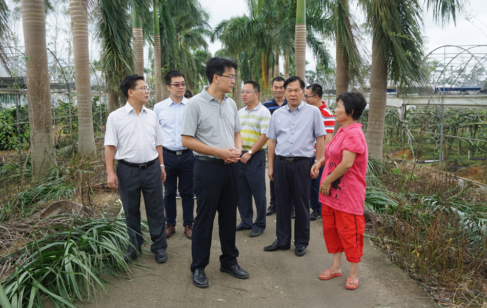 受台风“天鸽”正面袭击的影响,位于赤水镇的裕茂农场受灾比较严重,出现农场断电、大面积的果树被吹断、吹倒、果场大棚膜损毁严重、农场房屋顶棚被风掀翻等不同程度的受灾情况。庞正华书记鼓励受灾农场要树立信心,积极开展灾后生产自救。