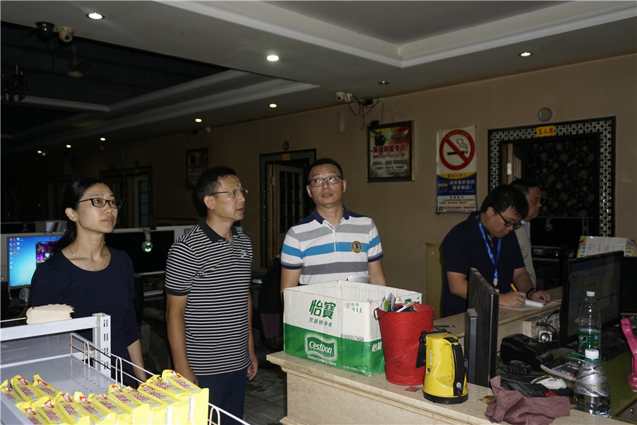 委常委、宣传部部长颜海娜在市文广新局负责人的陪同下到网吧和村(居)文化站(中心)检查,了解网吧规范经营和公共文化服务建设情况。