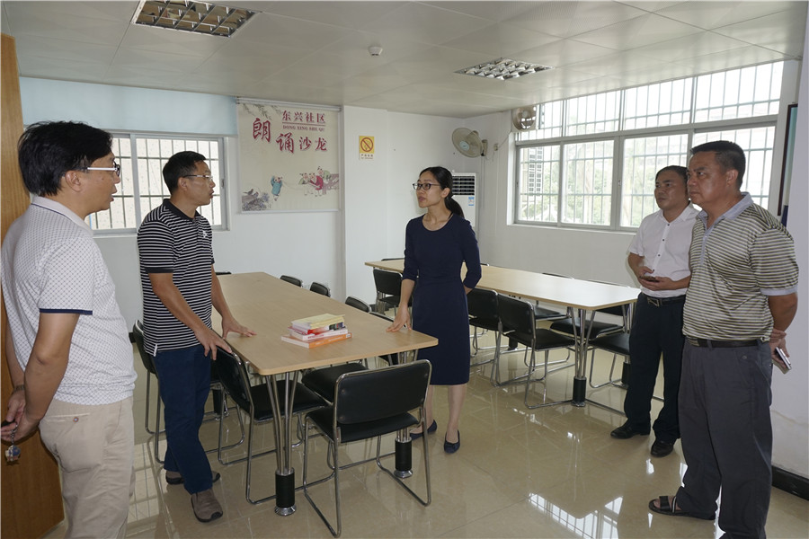 随后,颜海娜一行来到长沙街道东兴社区文体服务中心和三埠街道燕山大新村服务点,检查公共文化服务建设情况。检查中,颜海娜详细察看在显著位置是否展示村规民约、团体章程等规范守则,站、场内宣传标语、宣传海报等是否展示到位。