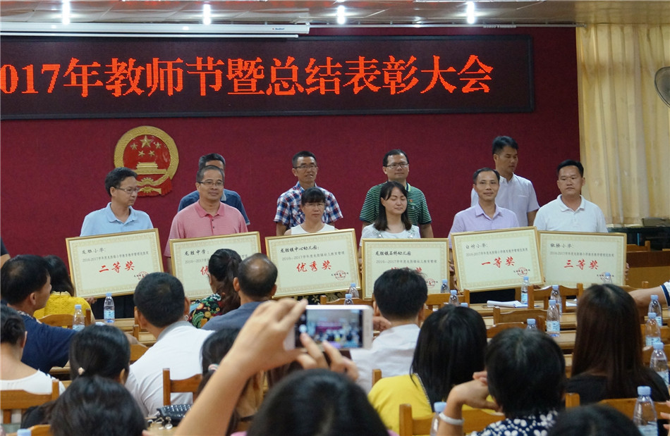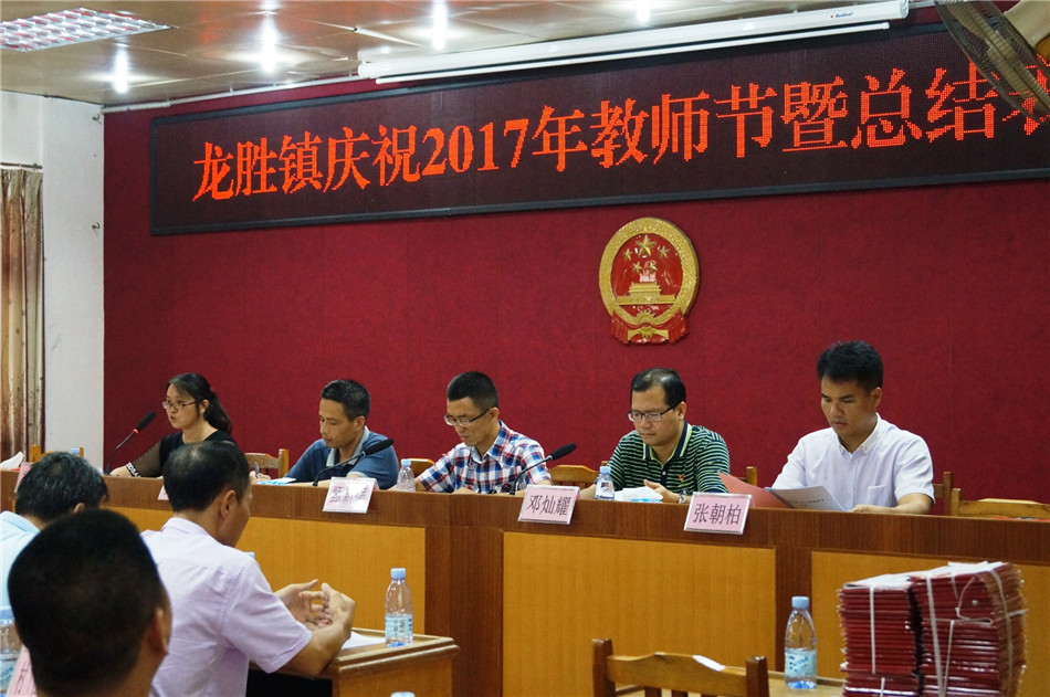9月6日下午,龙胜镇召开庆祝2017年教师节暨总结表彰大会,市教育局党组成员、主任督学、教育工会主席甄新强、龙胜镇党委委员邓灿耀、副镇长劳松炎以及各村(社区)支部书记、龙胜商会代表、教师代表共100多人参加会议。