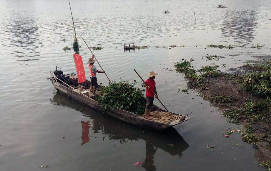 的环卫工人仍然在加班作业。由于连日来的几场雨,导致上游有少量水浮莲漂进城区水域,环卫处聘请了4只船、出动约50人次继续做好打捞水浮莲的收尾工作,共打捞约12吨水浮莲。 据统计,自7月15日-9月21日,市环卫处聘请18只船、利用钩机、压缩车、铲车、泥头车、浮箱等进行钩机、船、人力结合的方式,对苍江、潭江、茭江城区区域的水浮莲进行清理打捞,打捞行动共出动约1150人次,清除约2640亩水浮莲,共投入资金约23.3万元,城区区域的水浮莲得到有效控制。【转自中国亚星