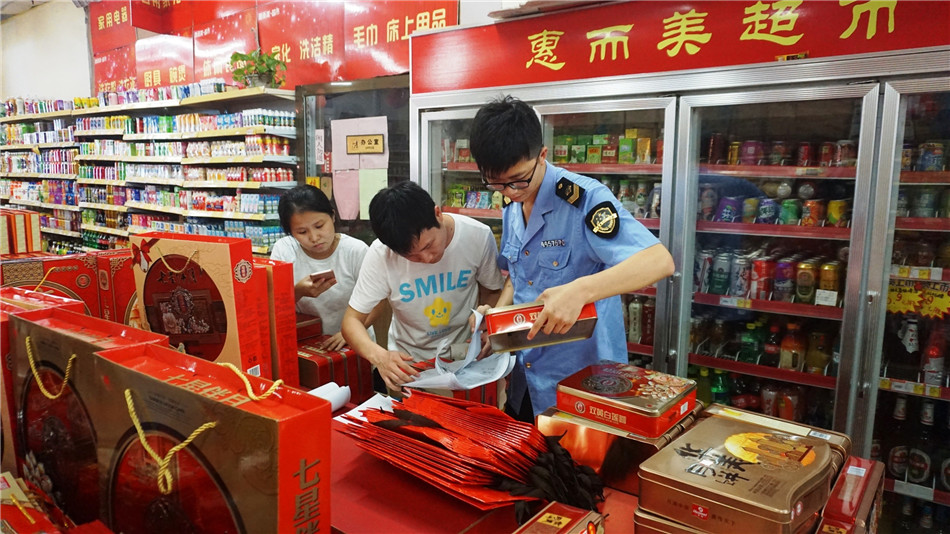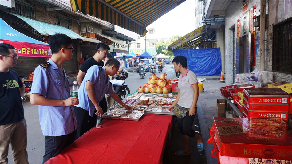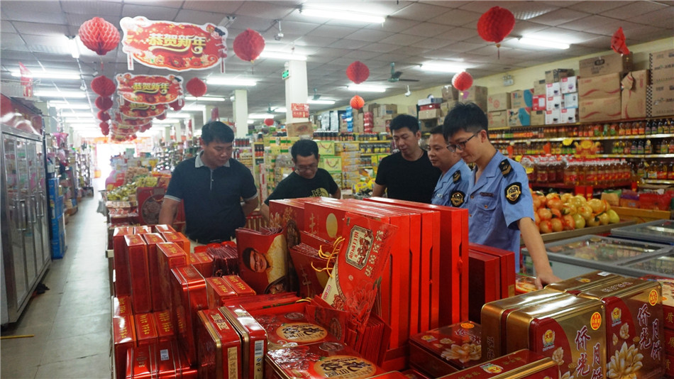 龙胜镇副镇长梁崇威带队,联合苍城食药监一行7人,对龙胜镇食品经营场所开展中秋节前食品安全专项检查行动。