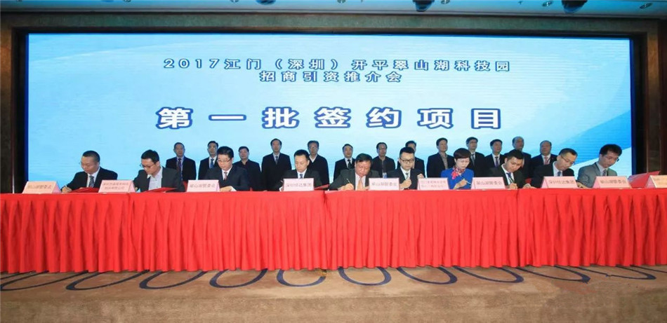 成功签约10个优质产业项目,总投资超59亿元人民币,其中包括投资12亿元的江门圣邦物流交易中心冷链项目、投资11亿元的深圳任达集团电气项目、投资8亿元的深圳任达集团养老项目等。