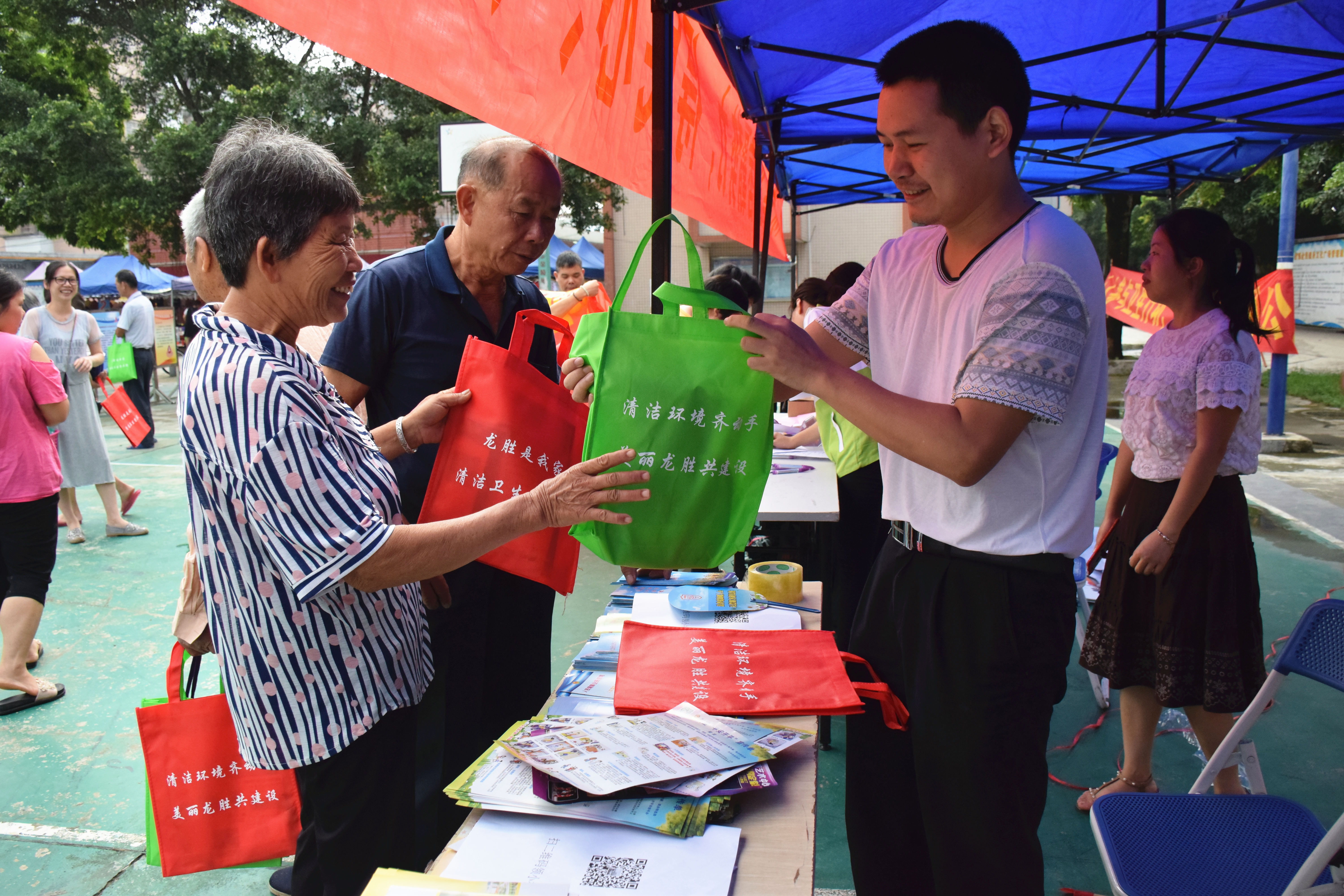 为广泛宣传龙胜镇创建广东省卫生镇工作,营造人人动手参与共建美好家园的良好氛围,6月14日上午,龙胜镇创卫宣传组到墟镇市场设点免费派发环保袋给广大群众,宣传创卫工作。