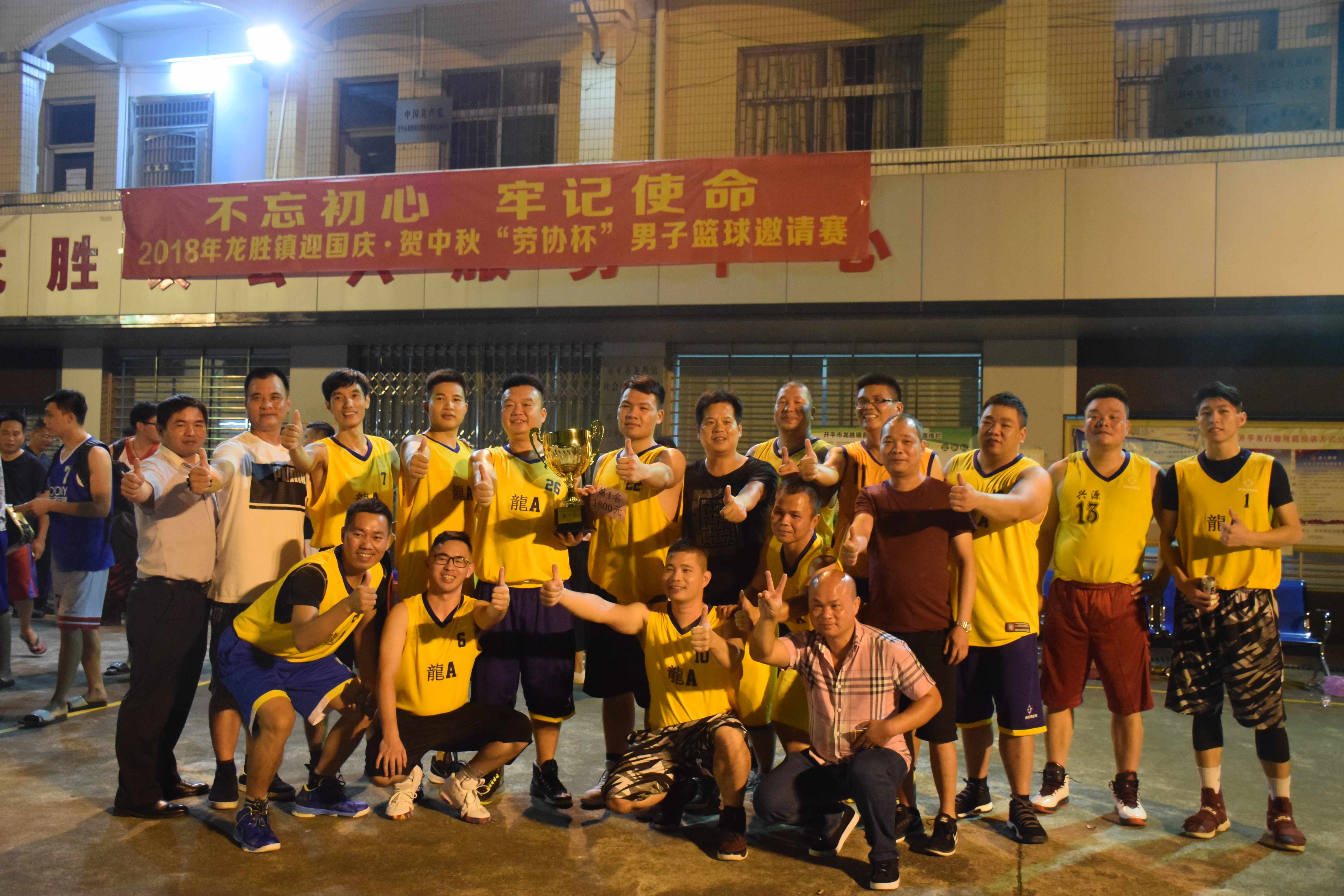 9月29日晚,2018年龙胜镇迎国庆·贺中秋“劳协杯”男子篮球邀请赛在龙胜镇政府篮球场圆满落幕。