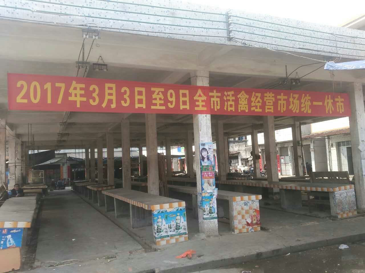 2017年3月3日至9日,江门市在全市辖区内所有活禽经营市场实施统一临时性休市