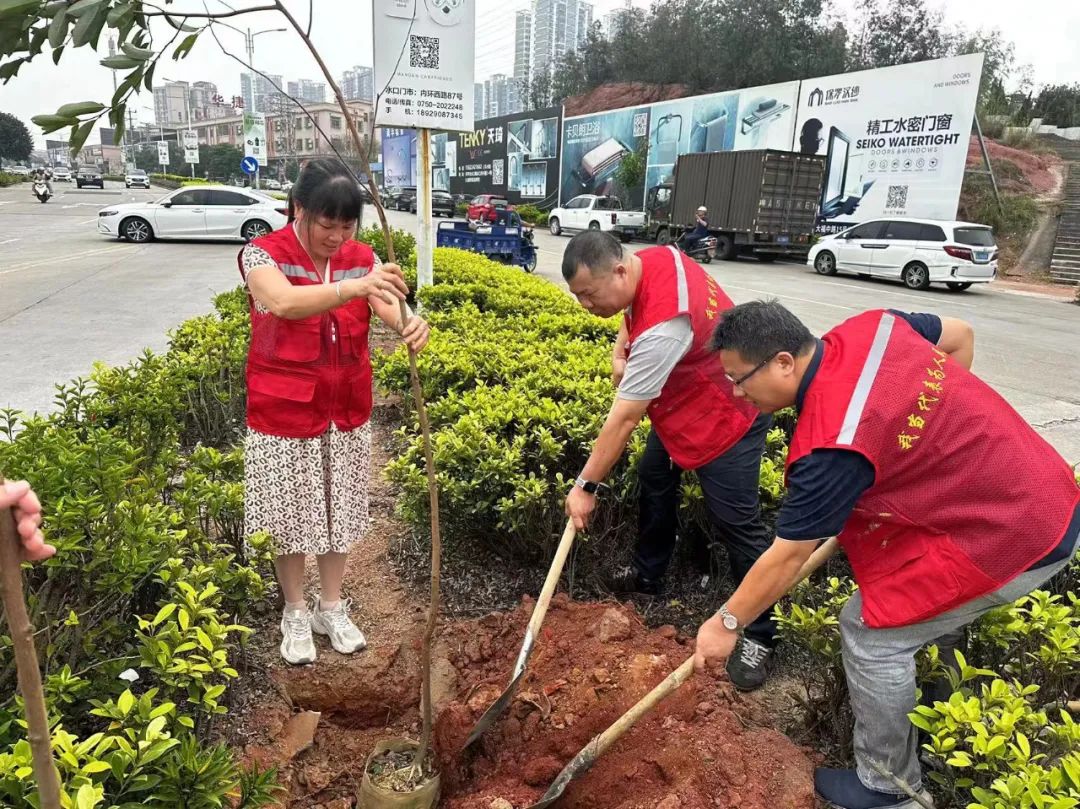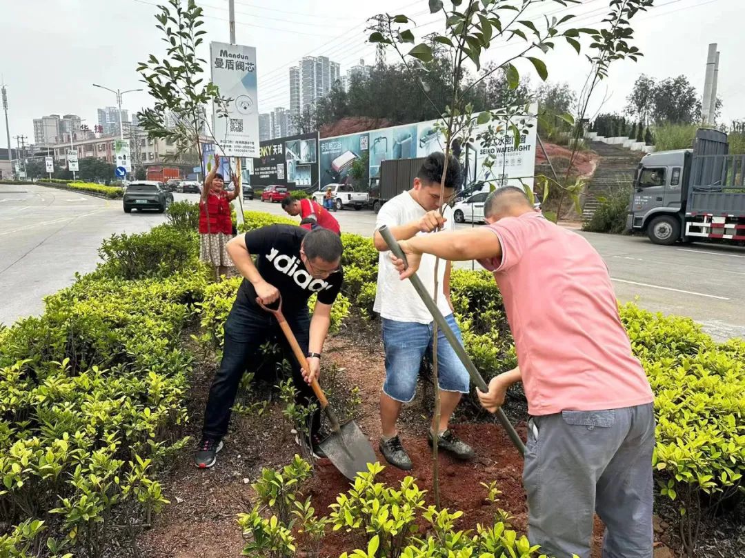 据悉,此次植树活动在沙冈工业园、东环路、谭国标烈士纪念碑园区栽下100余棵枫香树,为水口镇再添一抹绿意。