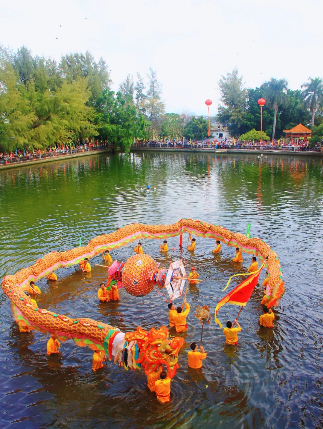 “龙灯戏水”是活动一大亮点。金龙村俗称“牛口村”,为避“送灯送龙入牛口”之忌,巨大的花灯要绕道而行,涉水过塘而入村。活灵活现的舞龙和花灯表演,令观众热血沸腾,引来阵阵掌声与喝彩。