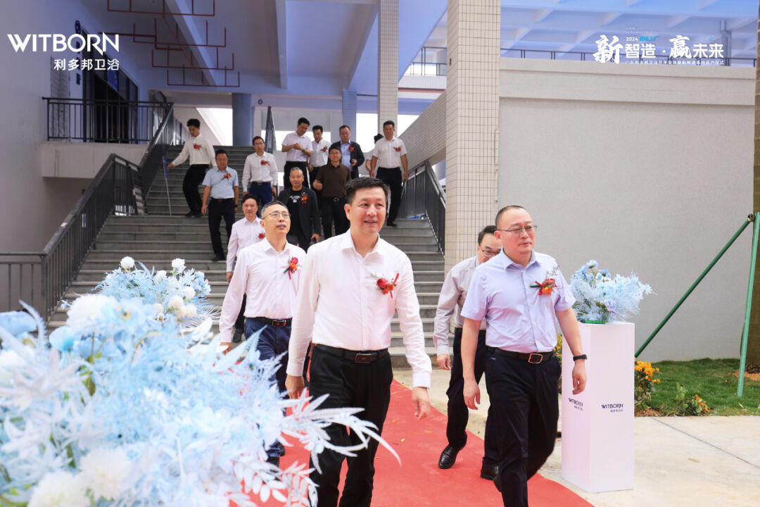 仪式结束后,领导和嘉宾参观利多邦卫浴生产线(企业供图)