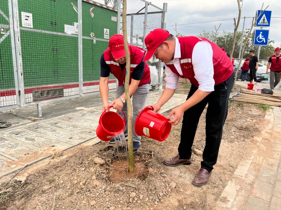 播下一片绿,迎来满眼春。为深入学习贯彻习近平生态文明思想,积极落实市委、市人大关于绿美亚星 生态建设及“百千万工程”的工作部署,充分发挥全镇各级人大代表表率作用,4月2日,水口镇人大组织30多名代表开展义务植树活动,以实际行动助力“百千万工程”实施和美丽圩镇生态建设。水口镇人大主席张金海、党委副书记谭保健、人大副主席冯惠清参加活动。