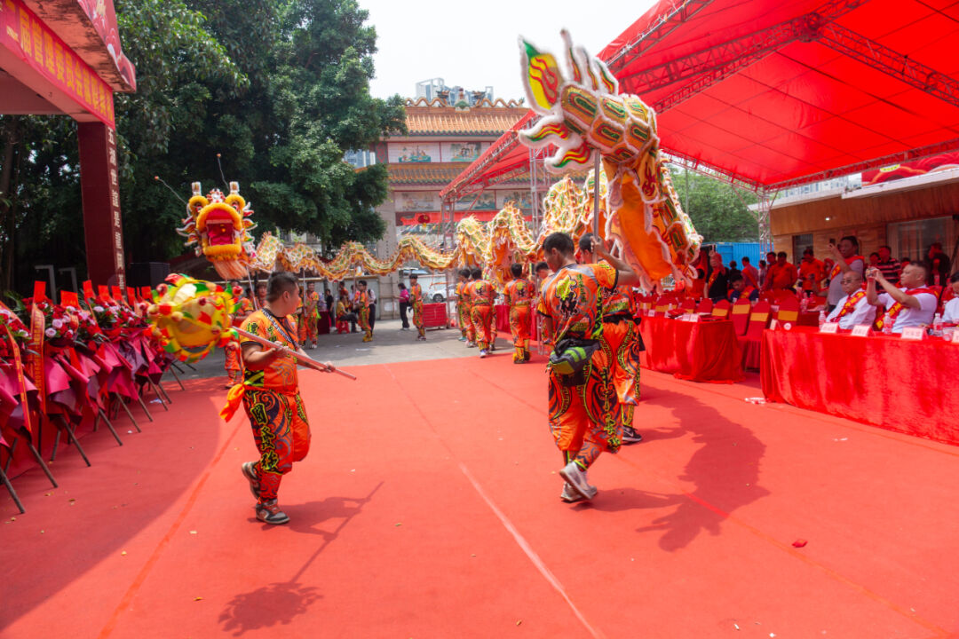 活动期间,彩龙飞舞,醒狮朝拜,炮竹连连,锣鼓喧天,一派欢腾热闹景象。
