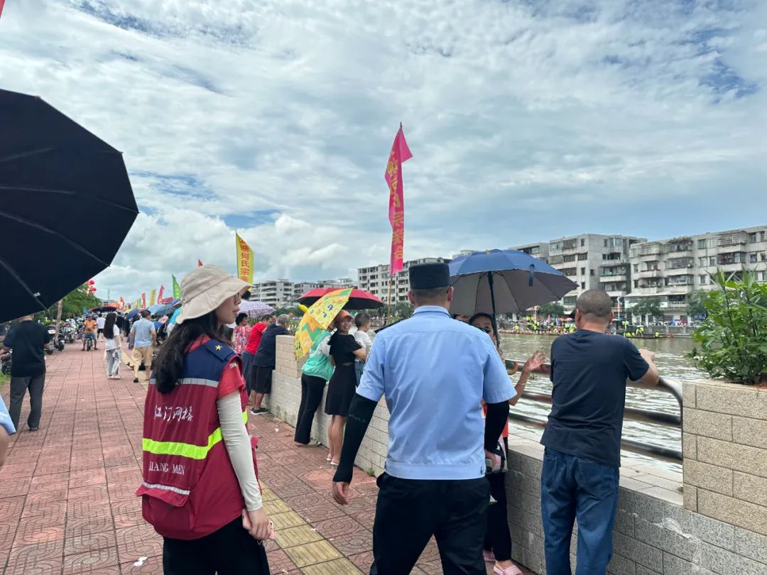 比赛当天,网格员们早早出动,奔赴赛场重要路口、重要点位值班值守,全力做好秩序维护、交通疏导、防控排查等保障工作。尽管端午前后气候变化多端,晴雨不定,时而艳阳高照,时而雷雨交加,但是网格员们丝毫不减工作热情,严把关口,勇挑重担,让广大市民游客看得开心、看得安全,确保了赛事期间秩序良好,圆满完成龙舟赛安保工作任务。