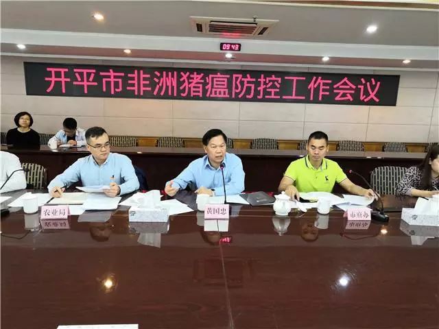 会议贯彻落实江门市防控非洲猪瘟工作会议的精神和工作要求。