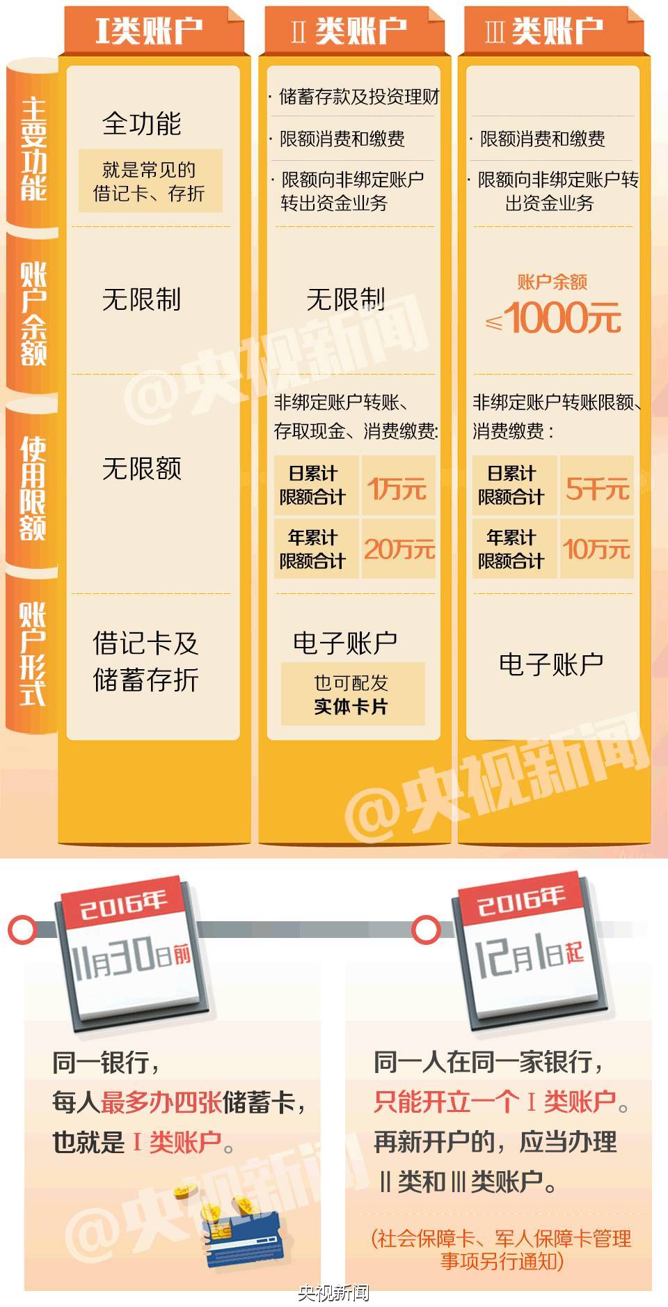 央行日前规定:自12月1日起,个人在银行开立账户,每人在同一家银行,只能开立一个Ⅰ类户,如果已经有Ⅰ类户的,再开户时只能是Ⅱ、Ⅲ类账户。
