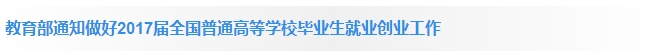 日前,教育部下发关于做好2017届全国普通高等学校毕业生就业创业工作的通知,《通知》从拓宽基层和重点领域就业渠道、推进创新创业教育和自主创业工作等多方面对学生创业就业作出部署,要求继续组织实施好“教师特岗计划”、充分发挥中小微企业吸纳毕业生就业的主渠道作用、充分利用大学科技园等创新创业平台为高校毕业生就业创业创造更多便利环境。