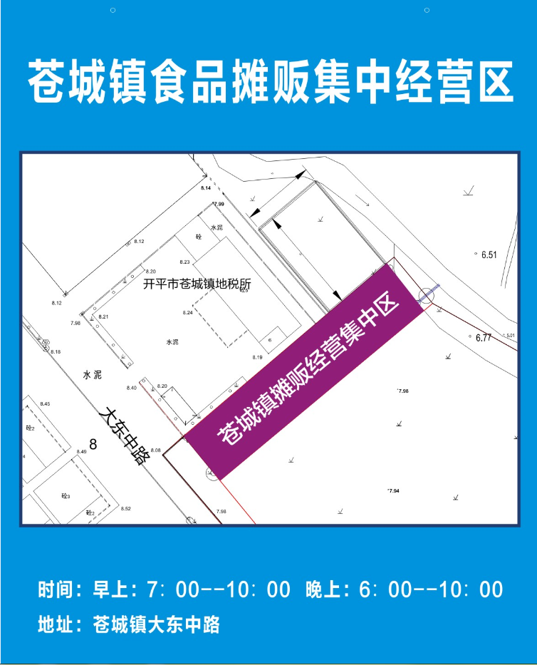 为进一步规范我镇食品摊贩管理,全面提升食品安全监管水平,根据《广东省食品小作坊和食品摊贩管理条例》和《关于进一步落实镇(街)职责加强食品摊贩监督管理工作的通知》(江食办[2017]40号)的文件精神及有关规定,经镇委镇政府研究决定,设立苍城镇食品摊贩集中经营区,位置位于大东中路市场广场左侧边,划定摊位号1-10号为食品摊贩集中经营区,经营时段:每天上午:7:00至10:00;下午:18:00至22:00,现给予公示。