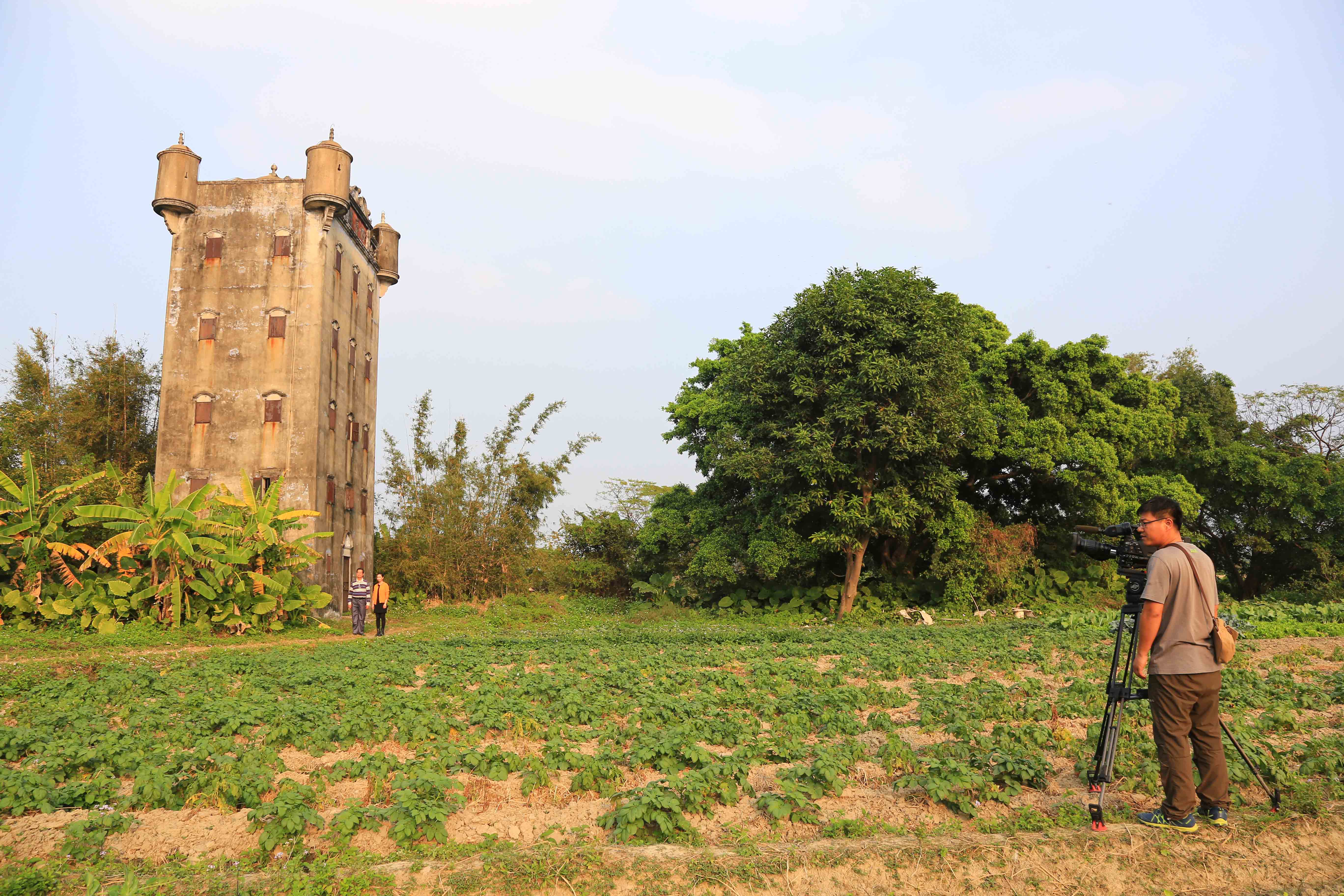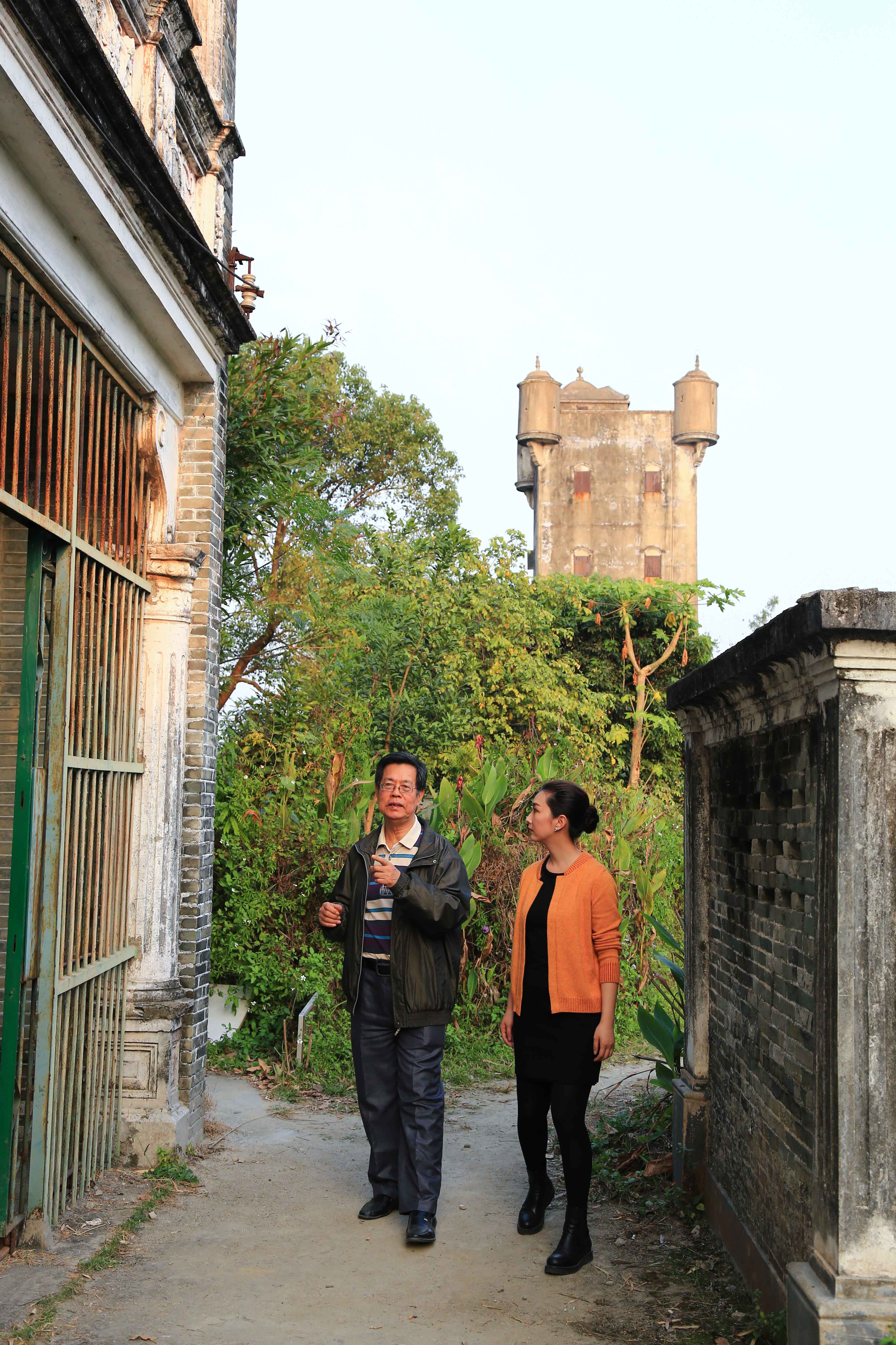 走在家乡的乡野中,关邦仲先生感慨近一个世纪以来,“加拿大村”所经历的历史沧桑。他向摄制组讲述了“加拿大村”的由来历史。“加拿大村”原名耀华坊,因由加拿大归侨创建,后又全村移民加拿大而得俗名“加拿大村”。1923年,关国涛等旅加归侨出资在家乡虾村东边建设别墅群,直到1936年,十多年间陆续建成了十座别墅和一座碉楼。1950年,“加拿大村”各户开始陆续移民加拿大,直到二十世纪九十年代,村中居民全部移居海外,现村中已无人居住。说到“加拿大村”以后的发展,关邦仲先生充满希望,他希望将“加拿大村”打造成为宣传华侨文化与精神的基地,做好旅游与文化的开发。