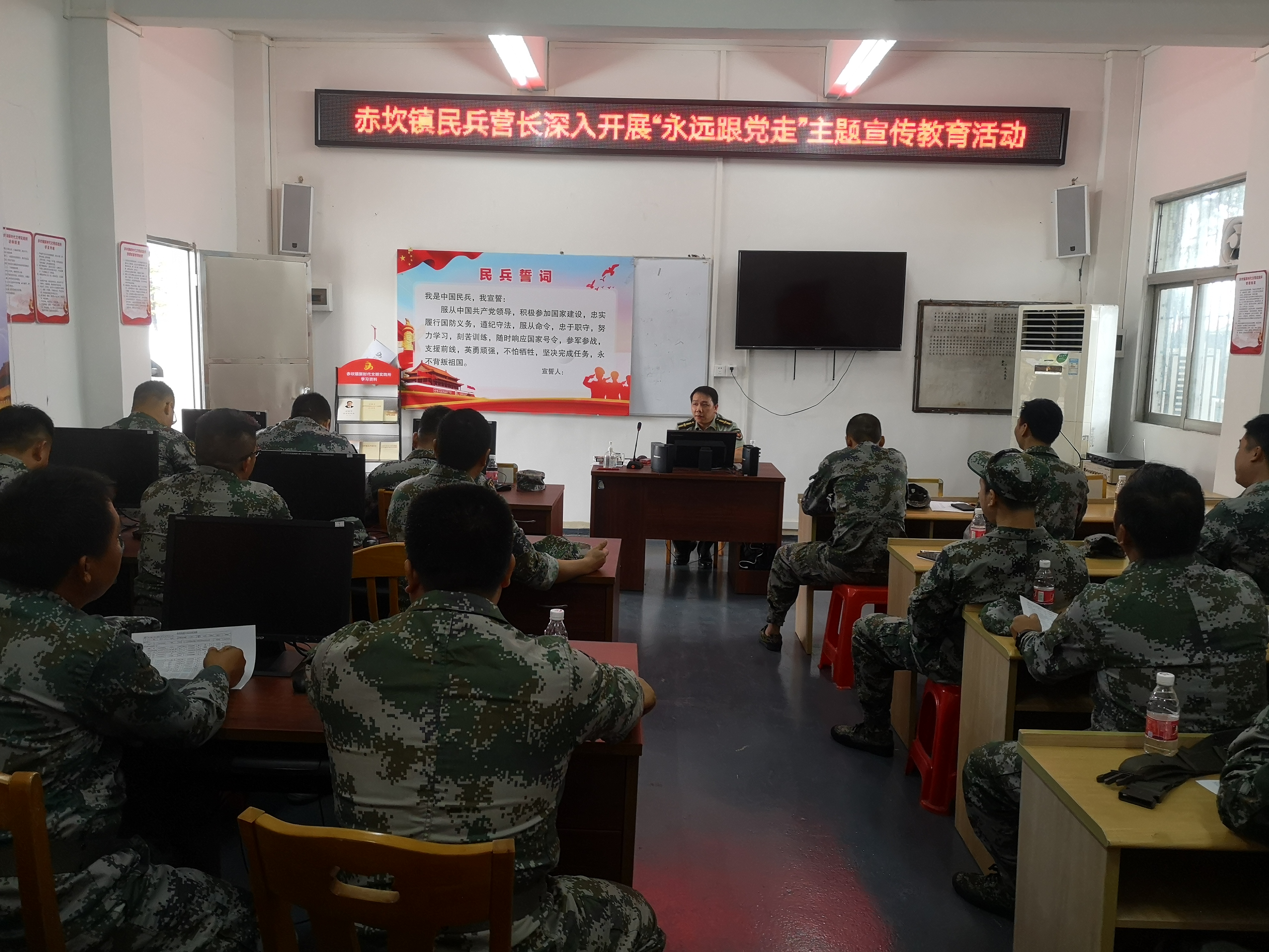 为深入推进党史学习教育,7月20日上午,赤坎镇在文体活动中心组织开展“永远跟党走”主题宣传教育活动,通过组织学党史、谈感想,引导民兵营长立足岗位、不断学习、增强本领,为赤坎武装工作贡献力量。赤坎镇党委委员、副镇长、武装部部长谭永健,各村(社区)民兵营长参加了活动。