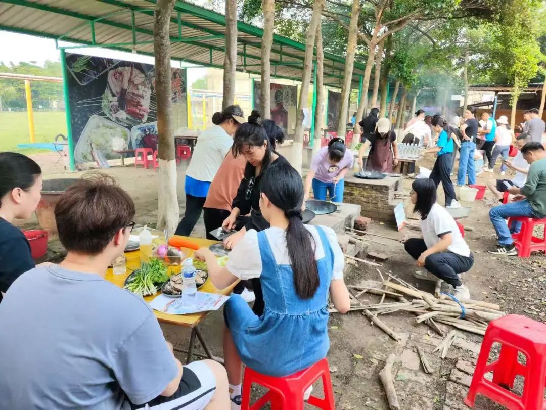 活动在充满活力的“美食争夺战”中拉开序幕。参赛选手们通过飞盘击中目标道具获得盲盒食材兑换券。游戏结束后,各队转战煮餐区,将“战利品”化作创意舞台,伴随着“滋滋”的爆炒声与蒸锅腾起的热雾,职工们在“美食DIY”环节大显身手,一阵阵香气交织成动人的劳动交响曲。
