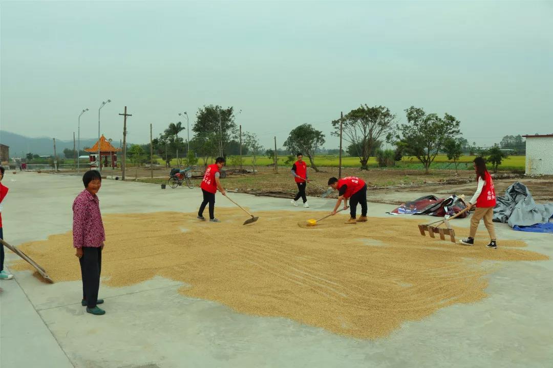 在镇委副书记叶绍聪的带领下,大家有条不紊地开展助农活动,纷纷拿起工具帮助村民们晒谷,扬谷。虽然现在已到深秋,大家还是忙得满头大汗,但看到自己的劳动成果还是感觉满足和开心。随后,党员义工们一起走访慰问了羊路村和沙洲村的老党员和困难群众。