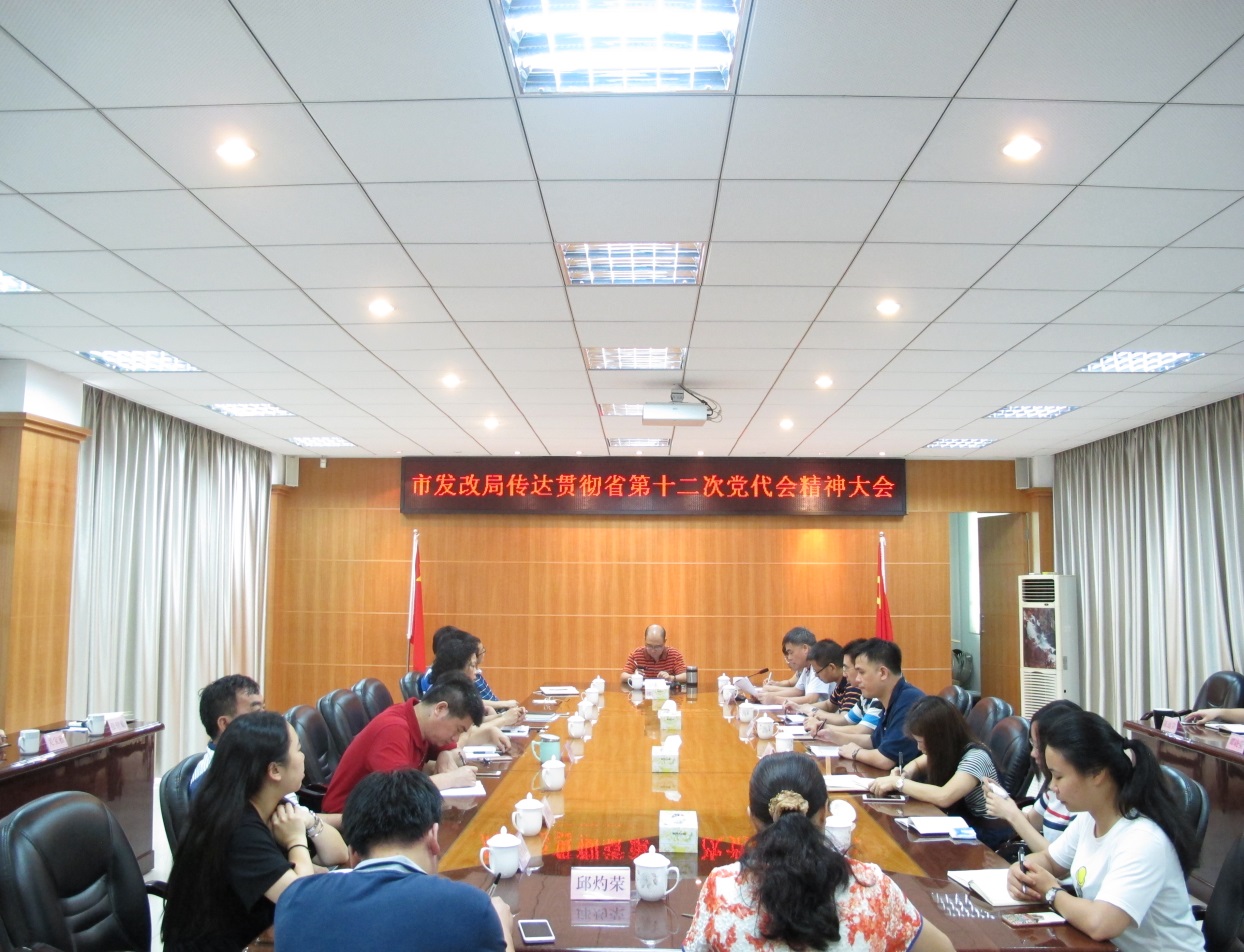 6月15日上午,市发改局召开局党组扩大会议,专题学习贯彻广东省第十二次党代会精神。会议由市发改局局长张健东同志主持,纪检组长邓剑彬同志重点传达了省委胡春华书记所作的报告、江门市委林应武书记的讲话以及亚星官网 委黄耀雄书记的贯彻意见。局全体干部参加会议。