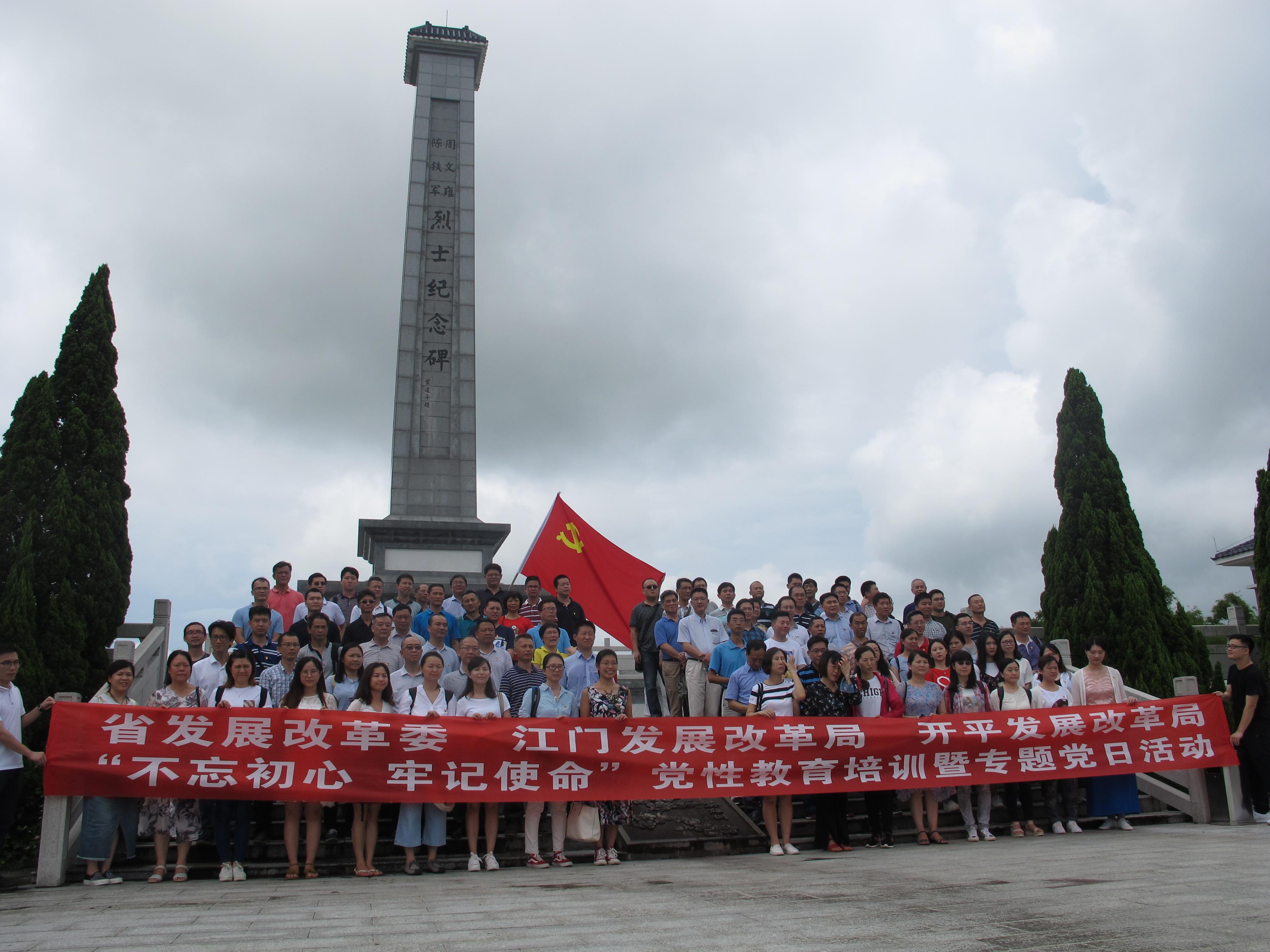 为隆重庆祝中国共产党建党97周年,弘扬党的优良传统和革命精神,激发全体党员对祖国、对党的热爱之情,进一步提升发改系统干部队伍的凝聚力和战斗力,6月22日,省发改委、江门发改局与亚星官网 发改局机关党组织联合开展“不忘初心、牢记使命”党性教育培训暨专题党日活动。省发展改革委党组成员、副主任吕成蹊,江门发展改革局党组书记、局长王长青,亚星 发展改革局党组书记、局长张健东等领导带队,超100名党员干部参加了活动。